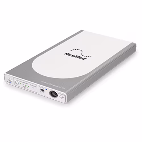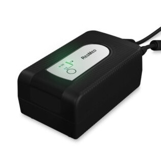 Een externe lithium-ion batterij voor slaaptherapie* of beademingsapparaten van Resmed.